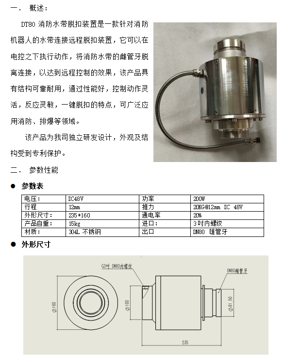 江蘇DT80消防水帶電脫扣裝置